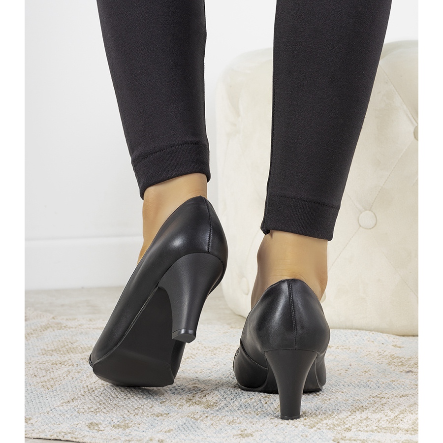 Černé lodičky Molina na vysokém podpatku jsou perfektní volbou pro ženy, které chtějí dodat eleganci svému oficiálnímu stylu. Tyto jedinečné boty jsou vyrobeny z vysoce kvalitní ekologické kůže, která zajišťuje nejen estetický vzhled, ale také komfort nošení. Měkký svršek se krásně přizpůsobí noze a kulatá špička s ozdobnou vsadkou z hadí kůže dodává originalitu.