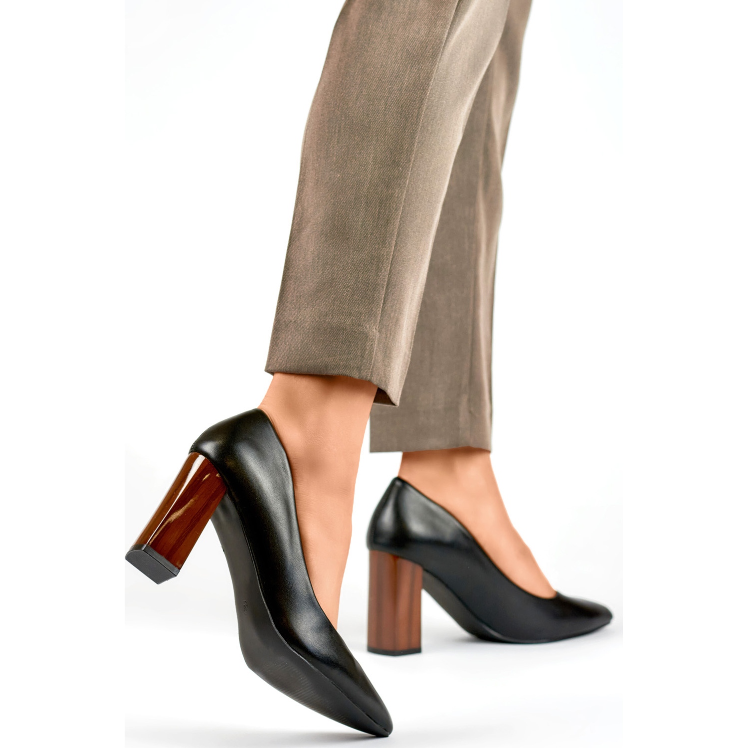 Vyrobena z ekologické kůže, čerpadla zajišťují trvanlivost a snadnou údržbu. Přírodní kožená vložka zaručuje pohodlí, a to i během dlouhého dne. Díky vložení je obuv velmi snadná, což bude jistě ocenit každá zaneprázdněná žena. Výška paty 8,5 cm v kombinaci s pevným sloupkem znamená, že čerpadla nejen zdůrazňují obrázek, ale také zajišťují stabilitu a pohodlí.