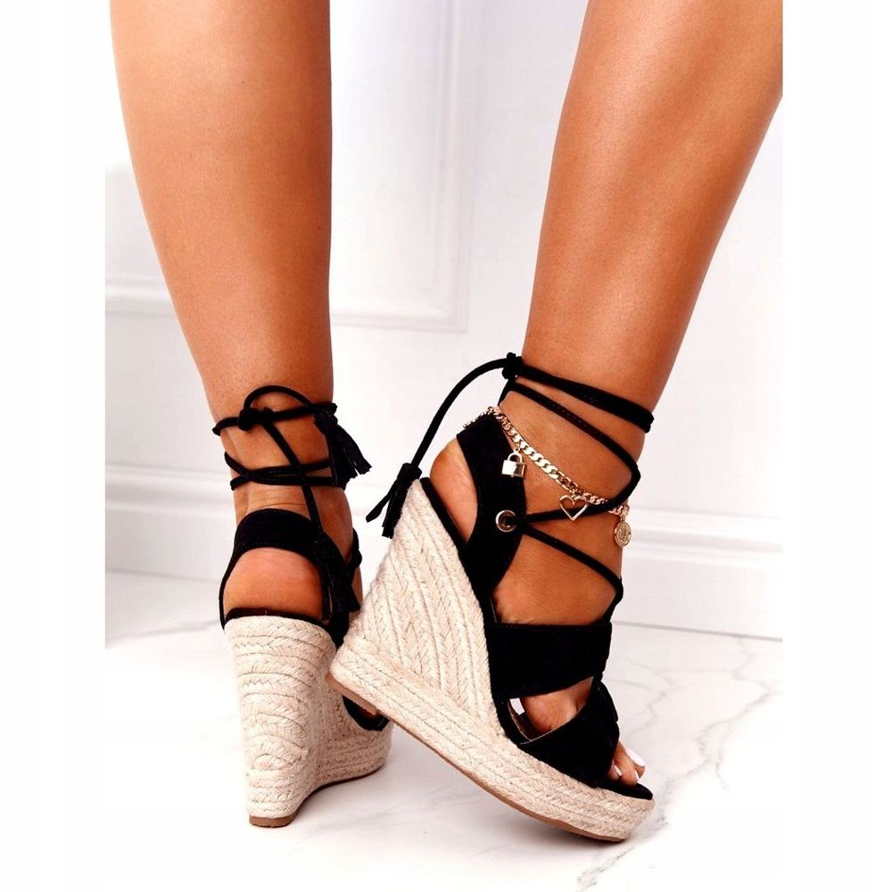 Tyto klasické klínové espadrilky jsou k dispozici v elegantní černé barvě, která se hodí k mnoha stylům. Výška klínku je 12,5 cm, což krásně zvýrazní nohy, zeštíhlí.