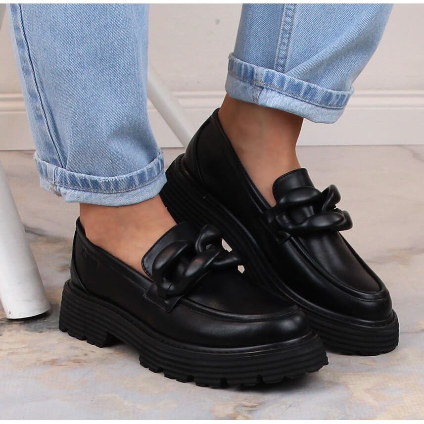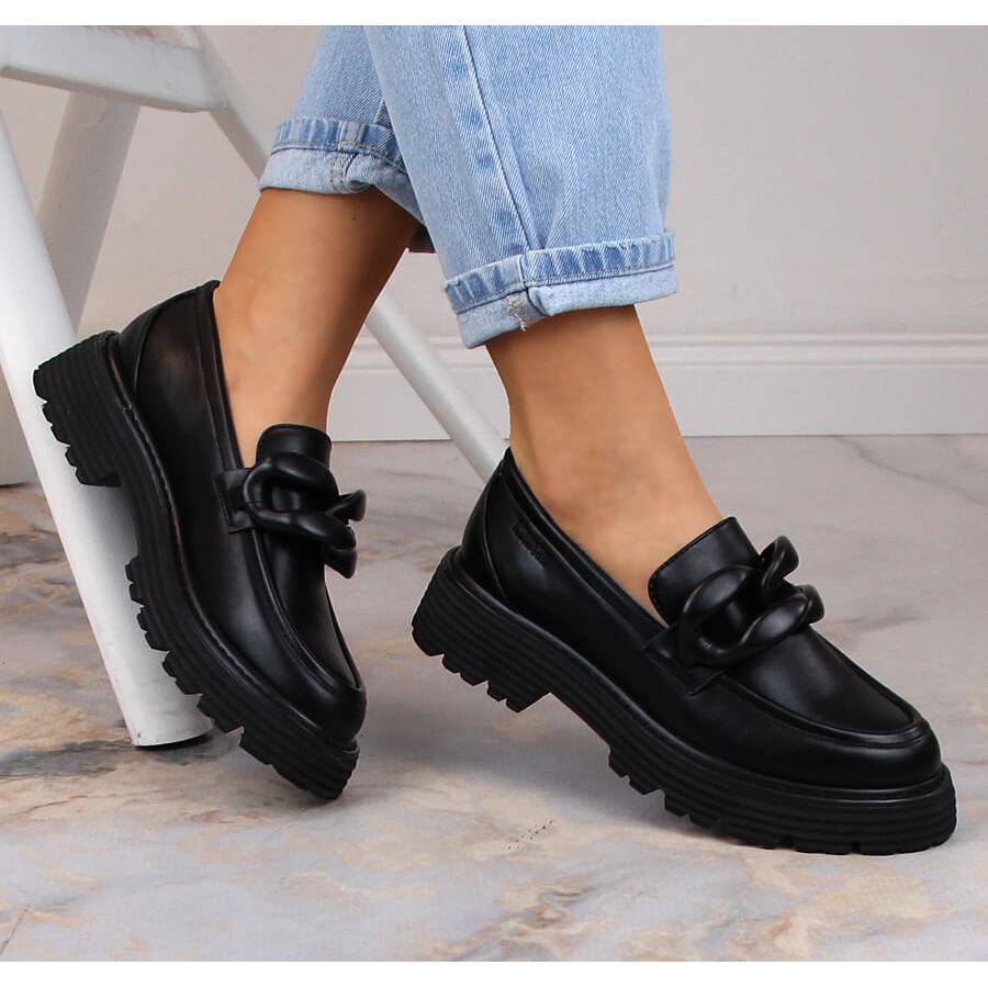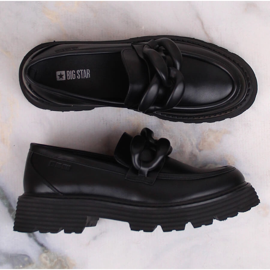 Big Star Černé mokasíny Big Star LL274580 na vysokém podpatku s řetízkem černá