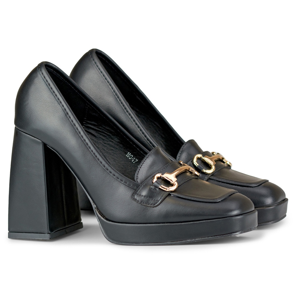 Černé mokasíny na vysokém a pohodlném paty jsou kombinací klasiky a moderního stylu - ideální pro ženy, které si cení elegance a pohodlí denně a během velkých východů.