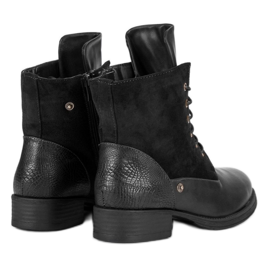 Díky použití vysoce kvalitních materiálů, jako je ekologická kůže a ekologický semiš, jsou tyto boty nejen módní, ale také ekologické. Interiér s kožešinou poskytuje pohodlí a teplo i v těch nejchladnějších dnech. Černé motorkářské boty jsou vybaveny praktickým zipem a doplňkovým šněrováním, které usnadňuje nazouvání a přizpůsobení noze.