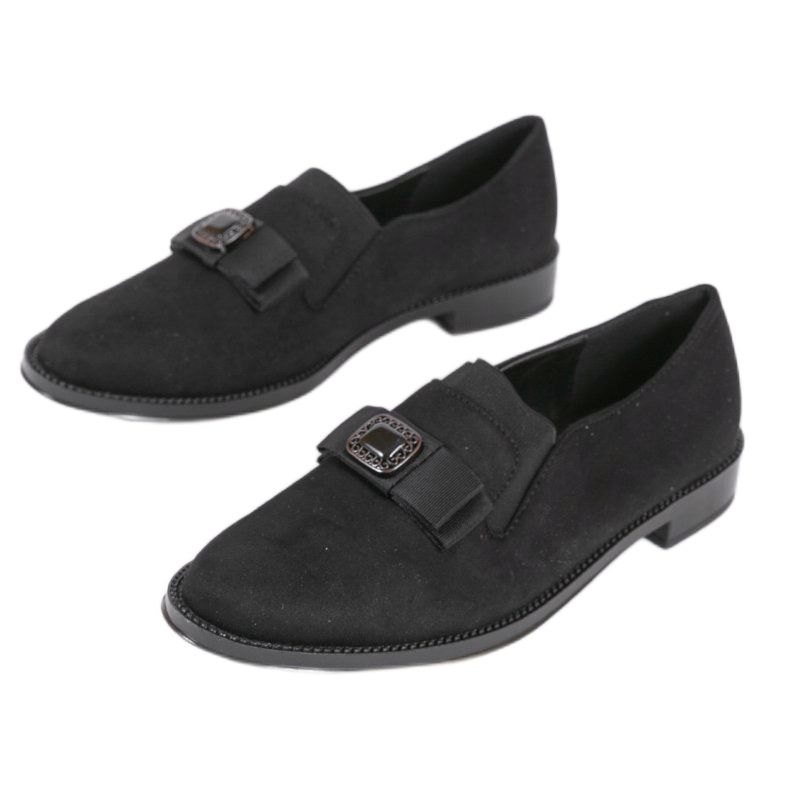 Černé slip-on boty se stuhou 236-1 jsou perfektní volbou pro ženy, které chtějí spojit eleganci s pohodlím. Tyto jedinečné boty přitahují pozornost svým originálním zdobením mašlí, které z nich dělá perfektní doplněk každodenních a jedinečných stylů.