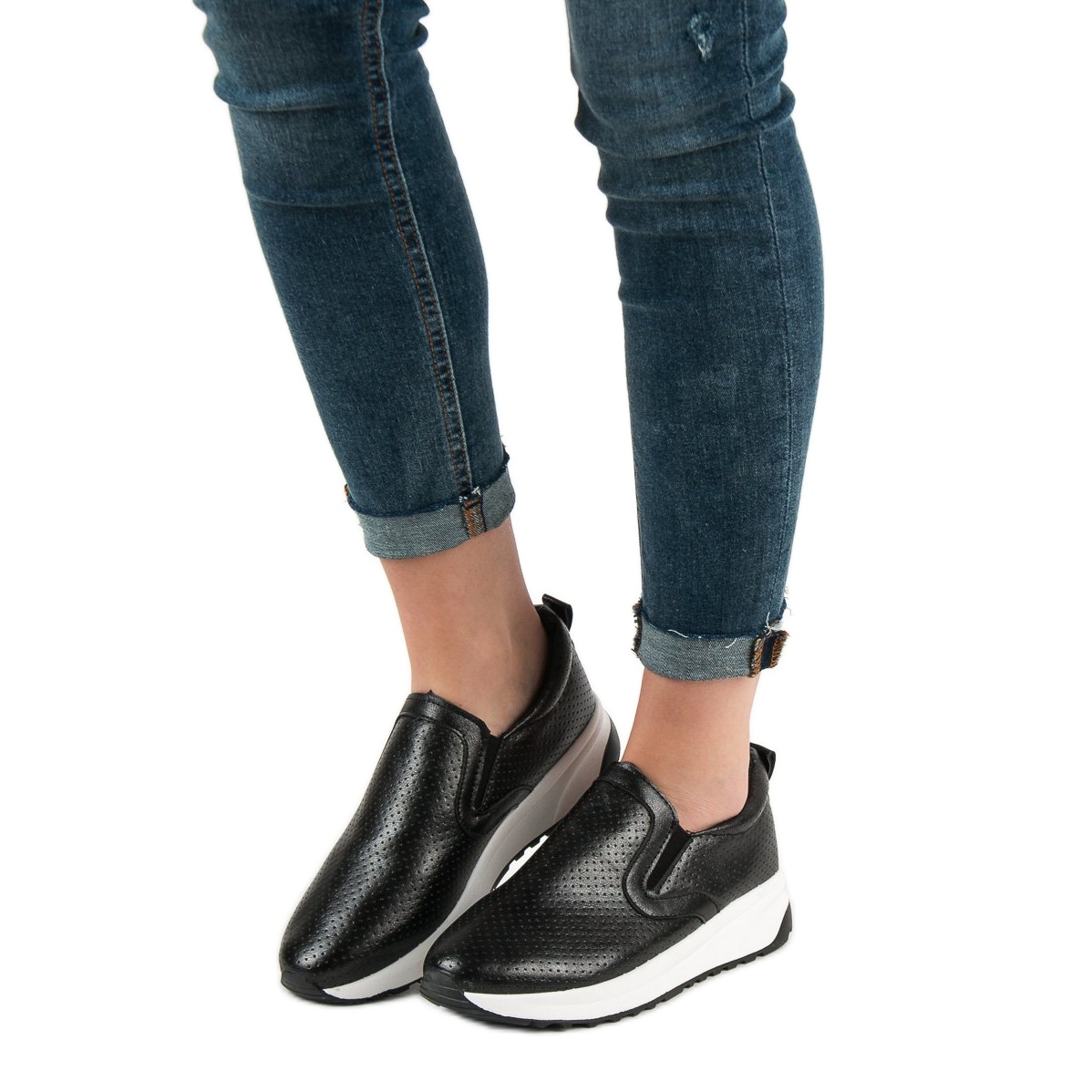 Černé slip-on boty Shelovet jsou perfektní volbou pro ženy, které chtějí spojit styl s pohodlím. Jejich prolamovaná úprava dodává botám moderní charakter a zároveň zajišťuje výbornou cirkulaci vzduchu, která udržuje nohy svěží po celý den. Tyto boty jsou vyrobeny z vysoce kvalitního materiálu podobného kůži a spojují estetiku s praktičností.