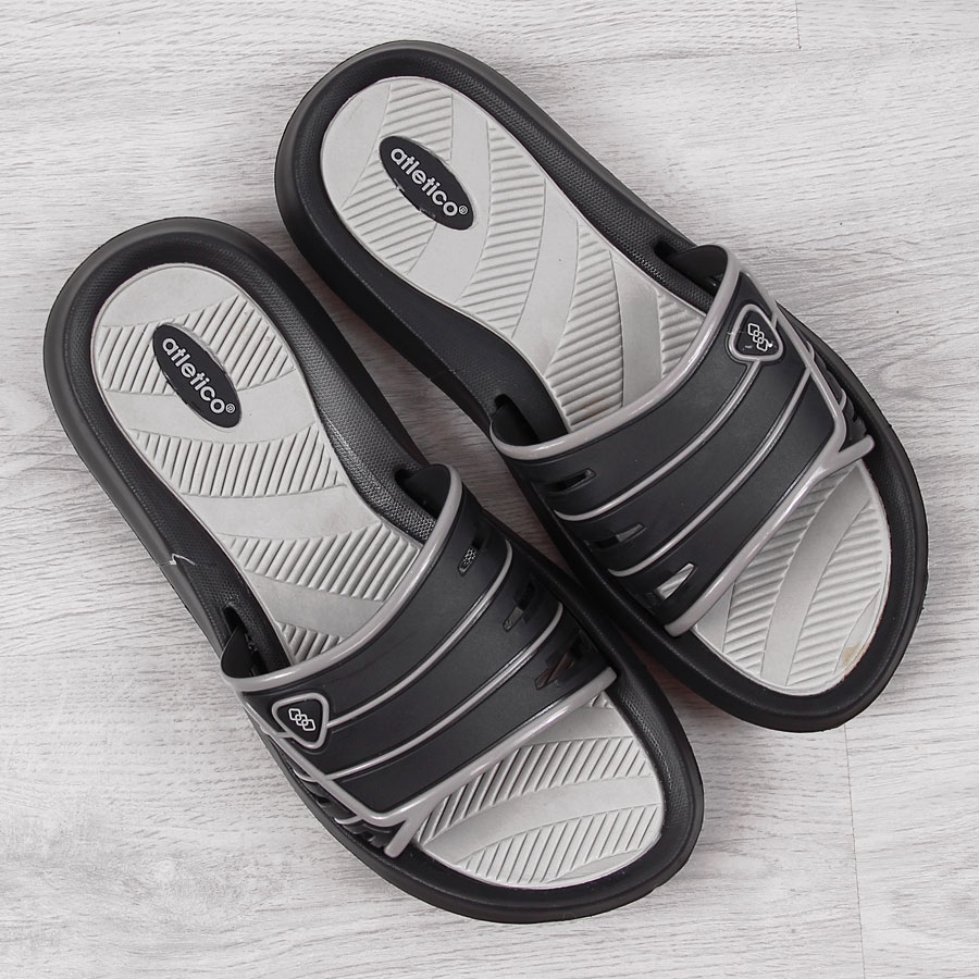 Nabízíme pánské gumové žabky v klasické černé barvě od renomované značky Atletico. Tyto sportovní žabky kombinují lehkost a pohodlí, což z nich dělá ideální volbu k bazénu, na pláž i každodenní letní aktivity.