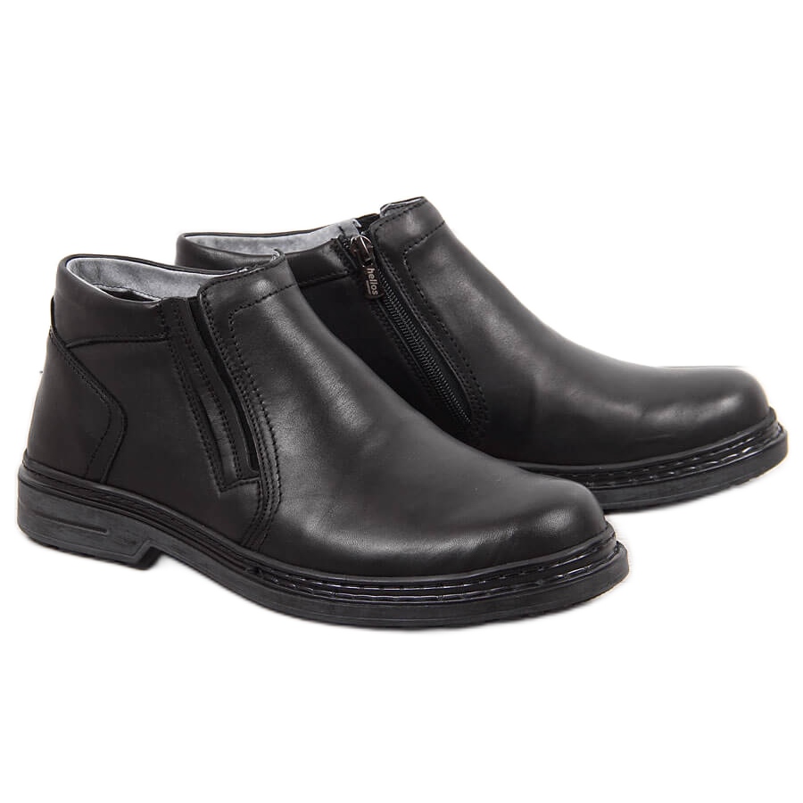 Helios Černé pánské kožené zateplené boty Helios 886 černá