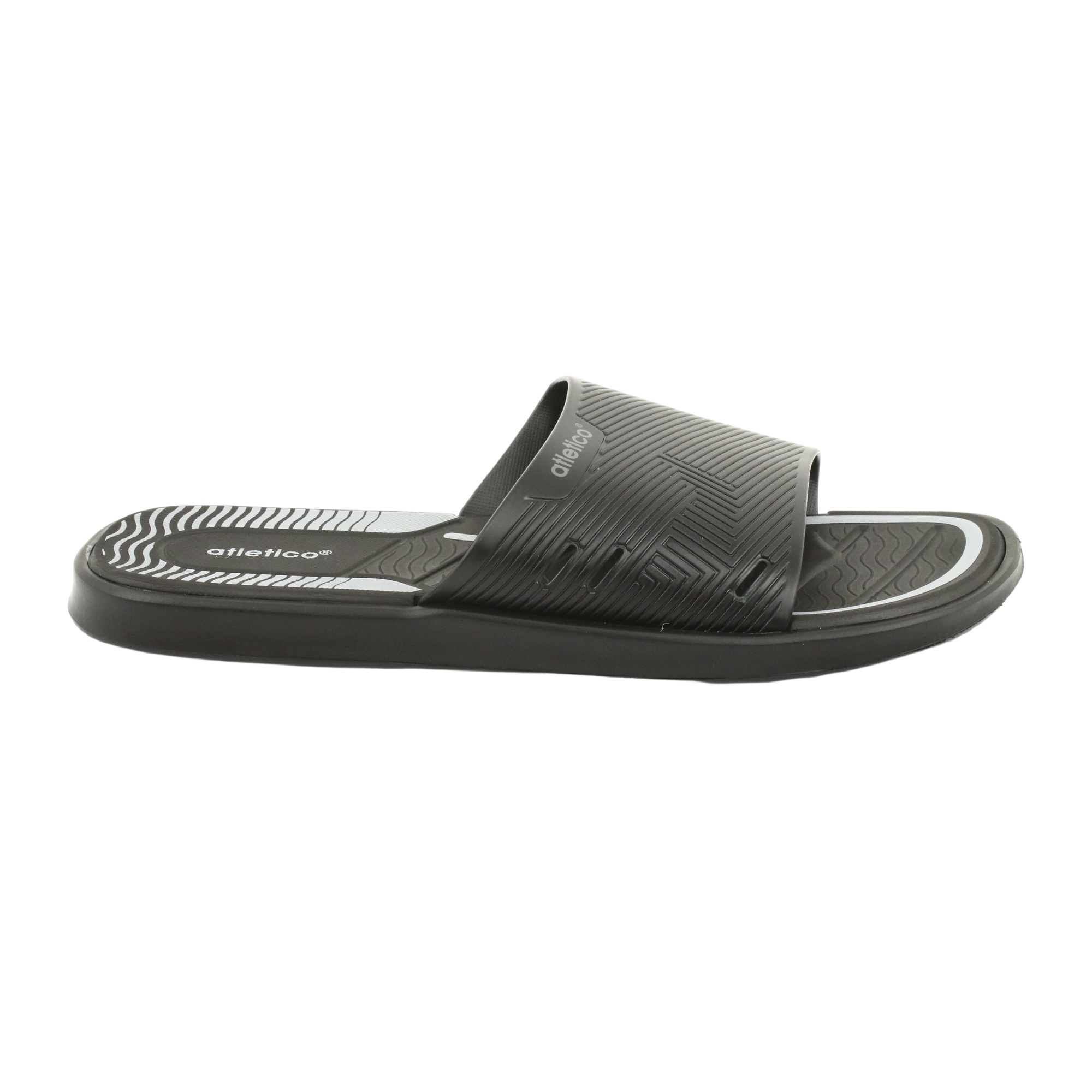 Výrobce Atletico je známý svým smyslem pro detail, který je vidět na každém prvku této obuvi. Syntetický materiál, a to pěnová pryž (EVA pěna), ze které je vyrobena podrážka žabek, poskytuje lehkost, tlumení nárazů a pohodlí při chůzi, což z nich dělá ideální volbu pro dlouhé letní dny na i mimo žabky. voda. Ergonomická podrážka zaručuje pohodlí, stejně jako podporu a stabilizaci chodidla.