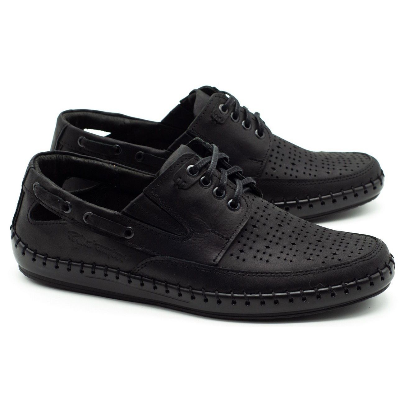 Polbut Polbut Černé pánské prolamované mokasínové boty J69L černá