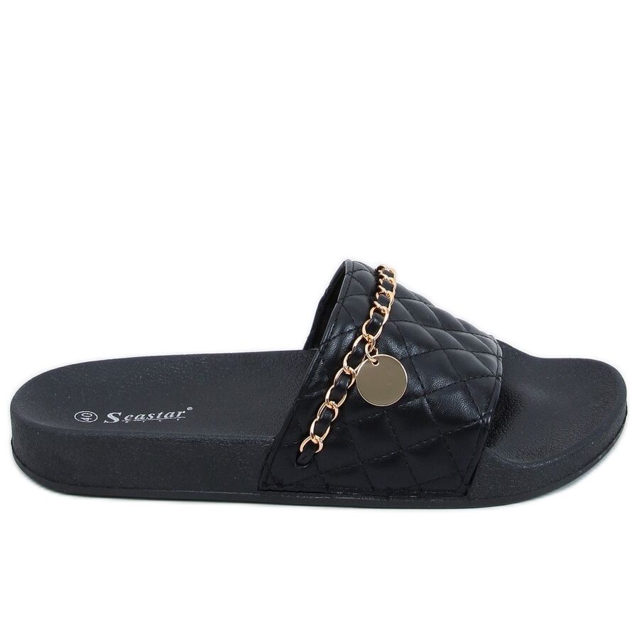 Objevte jedinečné černé žabky CK189P Black gold, které se staly symbolem letního stylu a elegance. Tyto stylové dámské žabky jsou perfektní volbou pro všechny ženy, které chtějí vyčnívat z davu. Působivé prošívání a krásný řetízek jim dodávají jedinečný charakter, který upoutá pozornost na každém kroku.