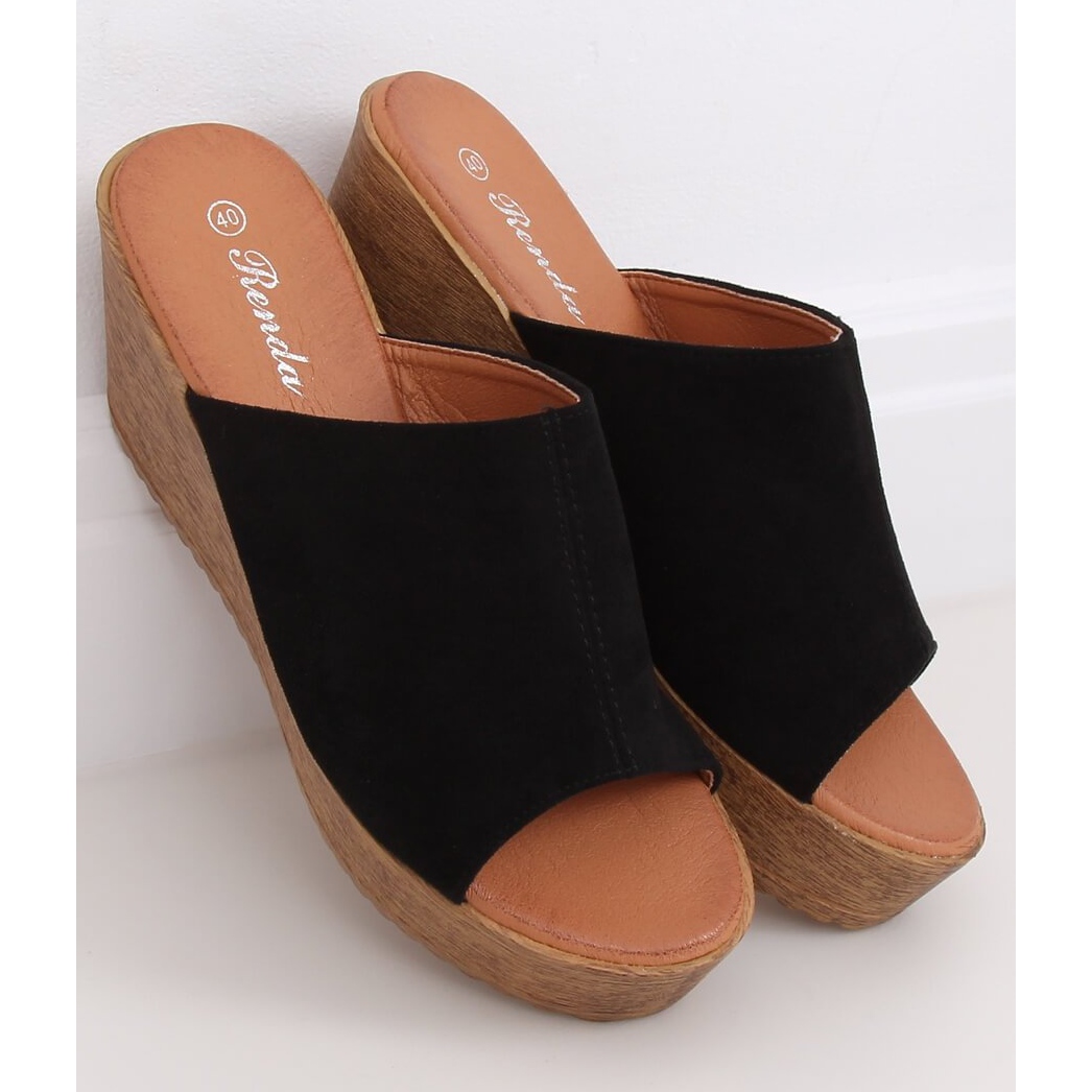 Inna marka Černé pantofle na klínku černé 10-236 černé černá