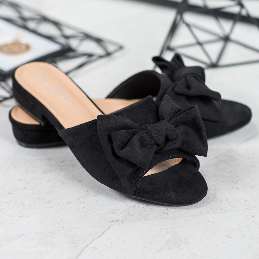 SHELOVET SHELOVET Černé pantofle na plochém podpatku černá