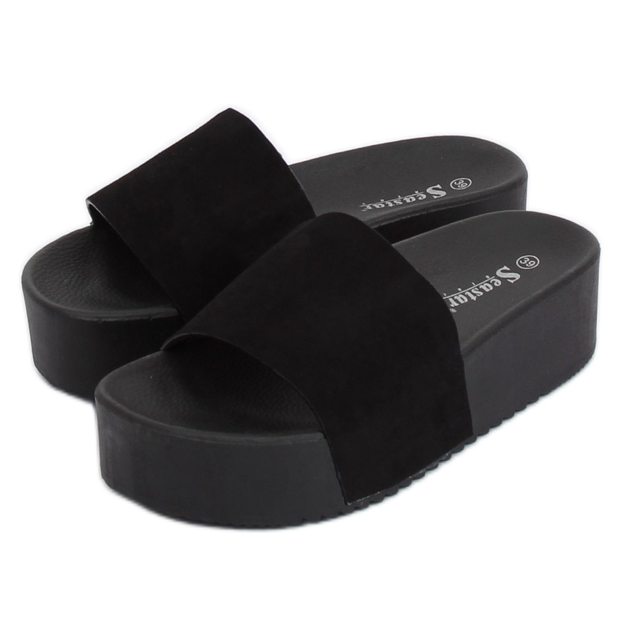 Černé pantofle na vysoké podrážce CK76P černý