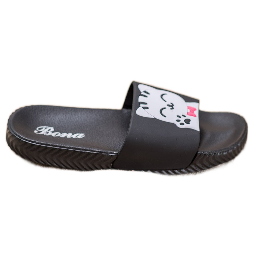 Představujeme žabky Bona Black s nášivkou - perfektní volba pro ženy, které ocení styl i pohodlí. Tyto okouzlující žabky s aplikací v podobě roztomilé kočky se vyznačují módním designem, který skvěle zapadne do jarních a letních trendů.
