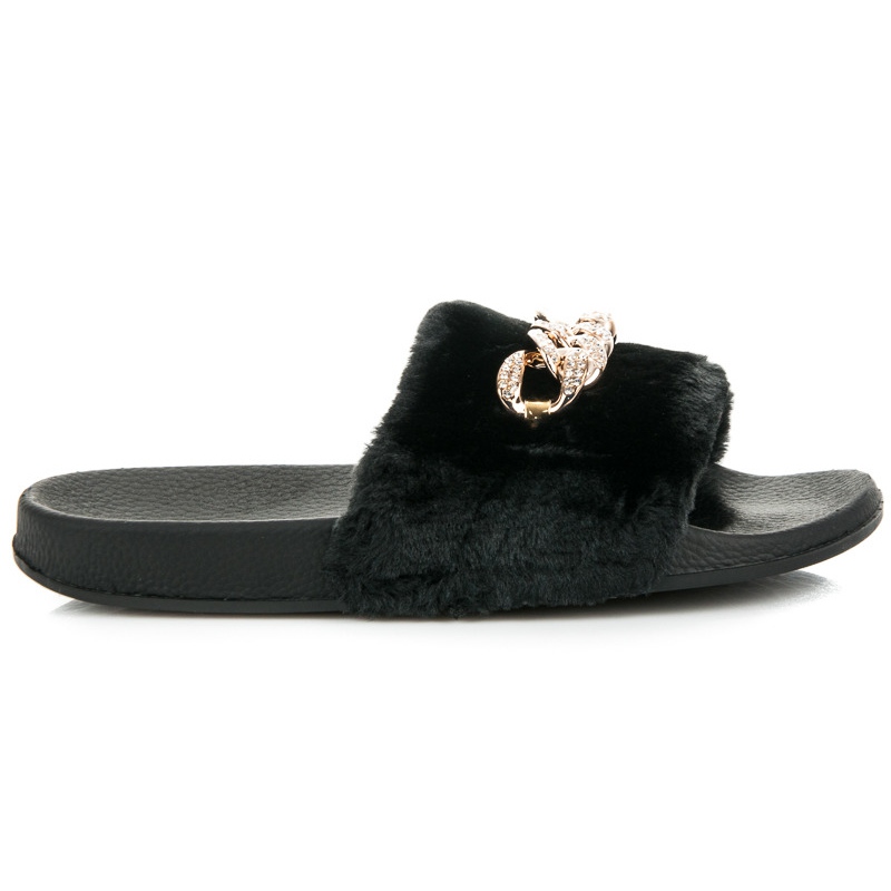 Podrobnosti: Queen Vivi Černé pantofle s kožešinou černý