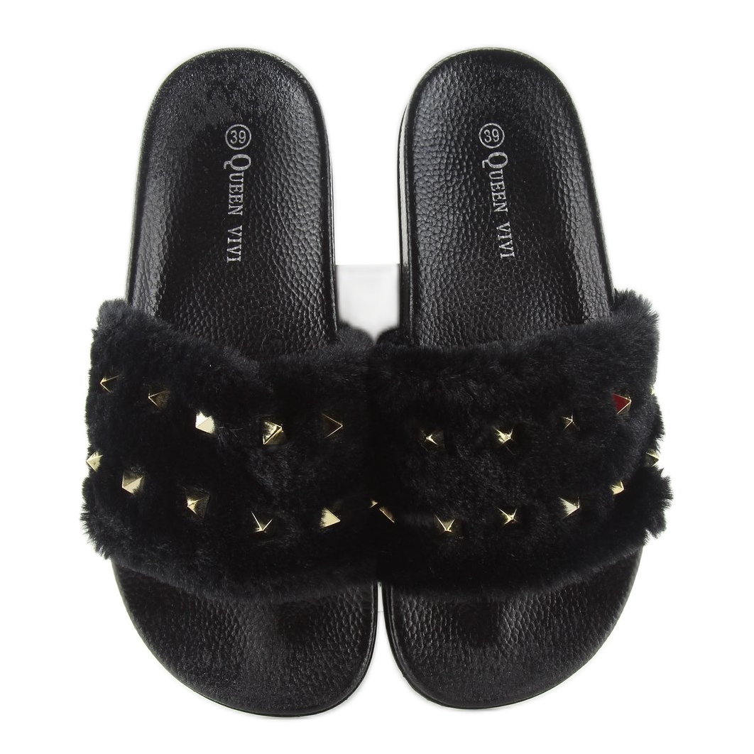 Inna marka Černé pantofle s kožíškem a černými cvočky černá