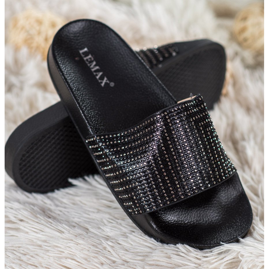 Lemax Černé pantofle s krychlovým zirkonem černý