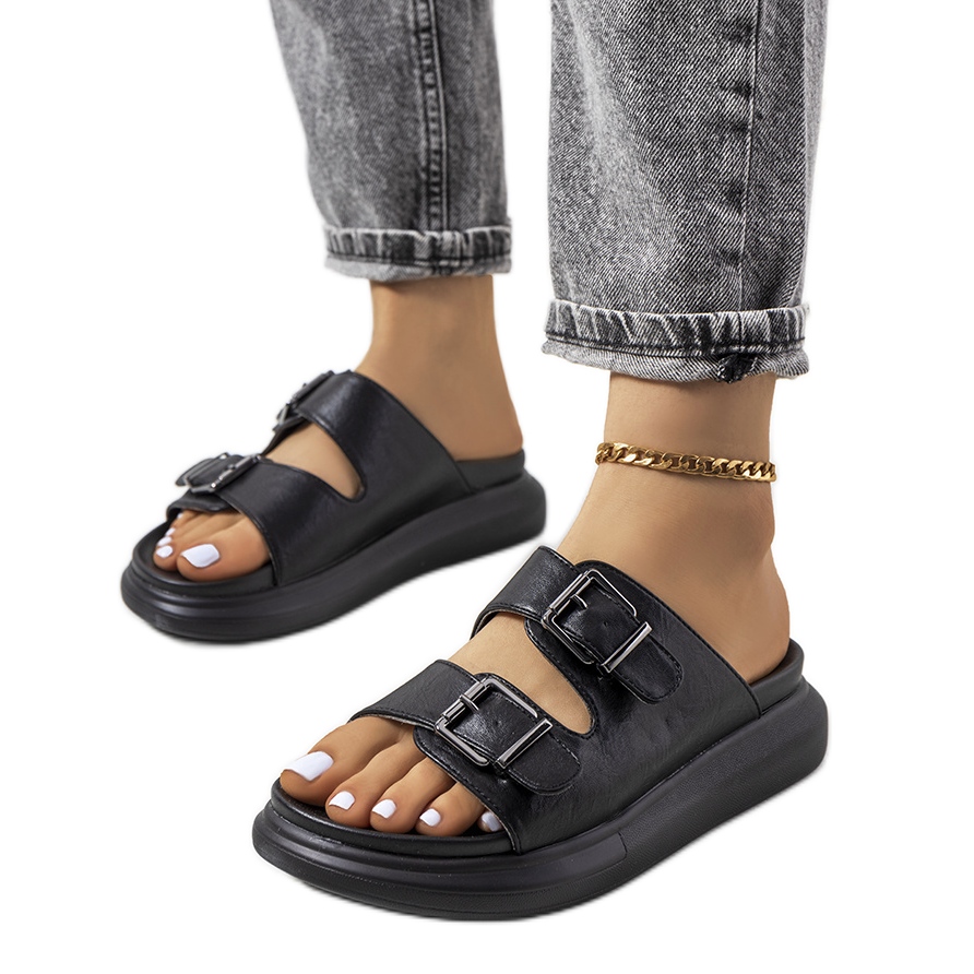 Podrobnosti: Černé pantofle s přezkami Ageston černý