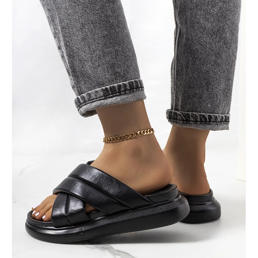 Černé pantofle s řetízkem Levy černý