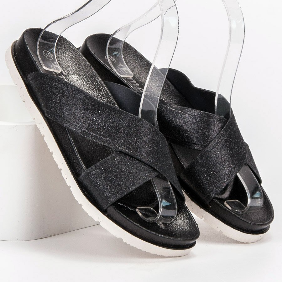 **Černé žabky Emaks se třpytkami**