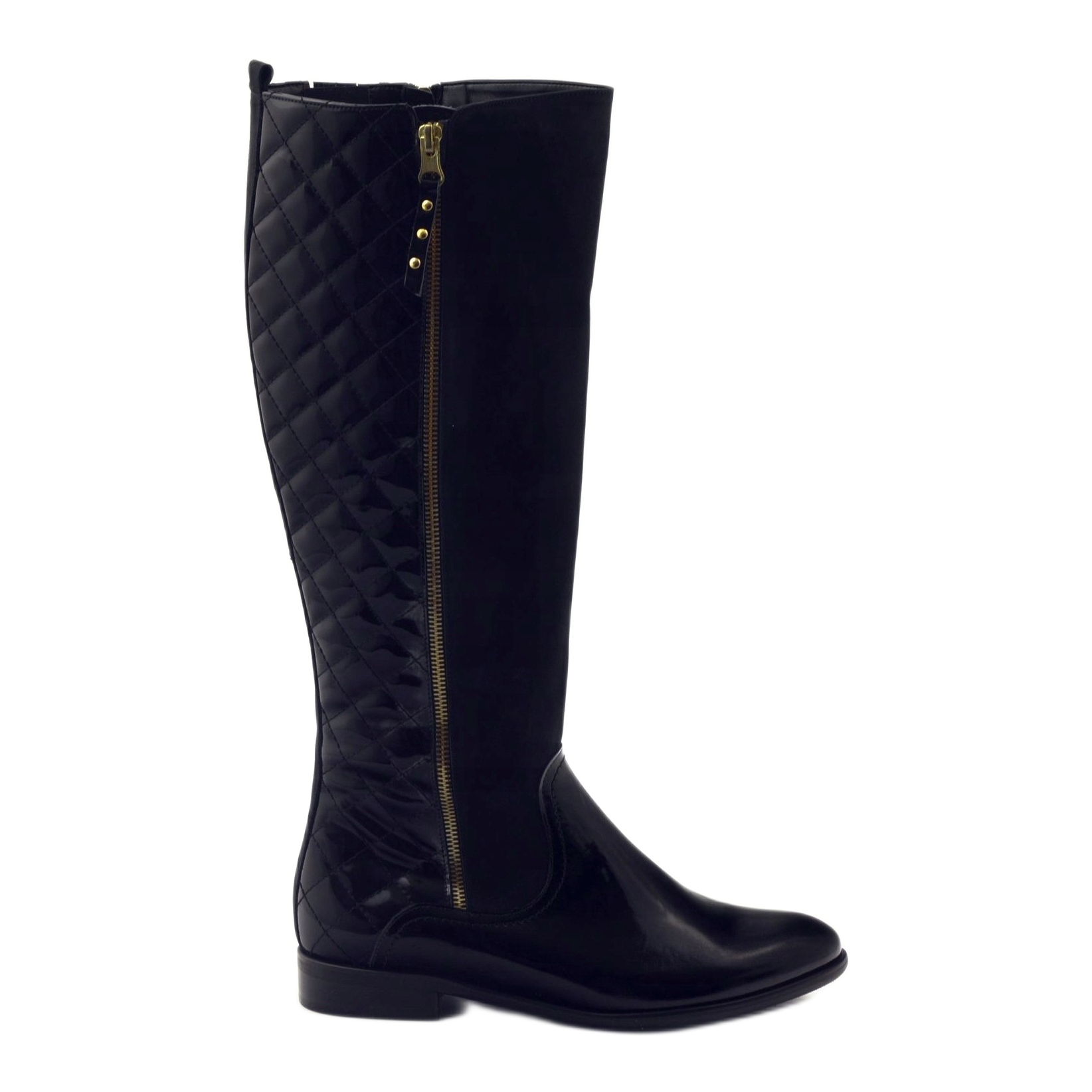 BM BM Černé patentované prošívané boty pro ženy 1800 černá