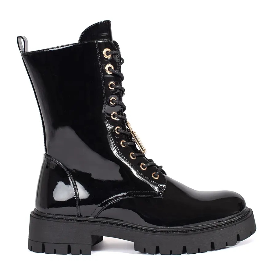Podrobnosti: Seastar Černé patentované šněrovací pracovní kotníkové boty na platformě se špendlíky černá