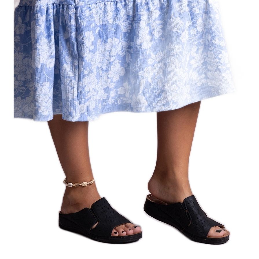 Objevte jedinečné černé perforované obraty Marouna, které jsou ideální volbou pro horké letní dny. Tyto módní žabky na platformě kombinují moderní design s výjimečným pohodlím, díky čemuž je nutné mít každého fašisty. Vyrobeno z vysoce kvalitní ekologické kůže, zajišťují trvanlivost a pohodlí nošení po celý den.
