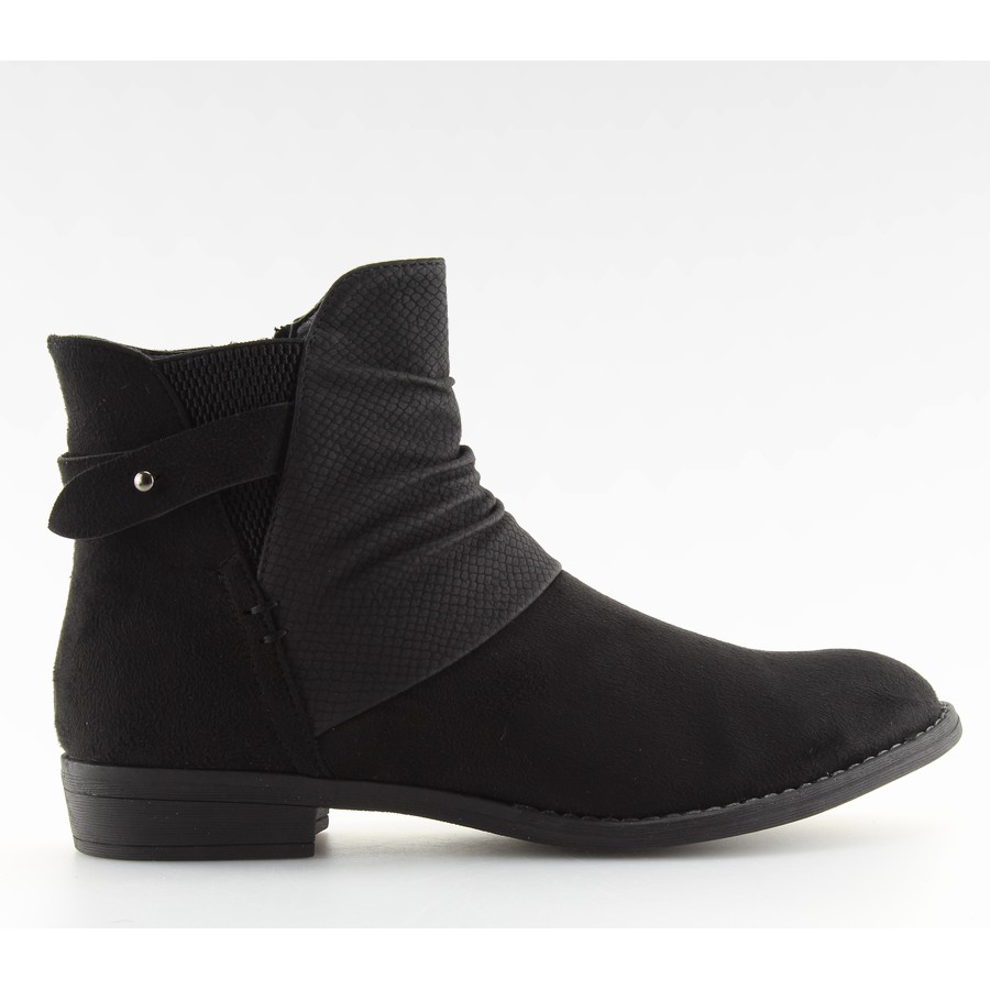 Černé kotníkové boty na plochém podpatku 303 Black