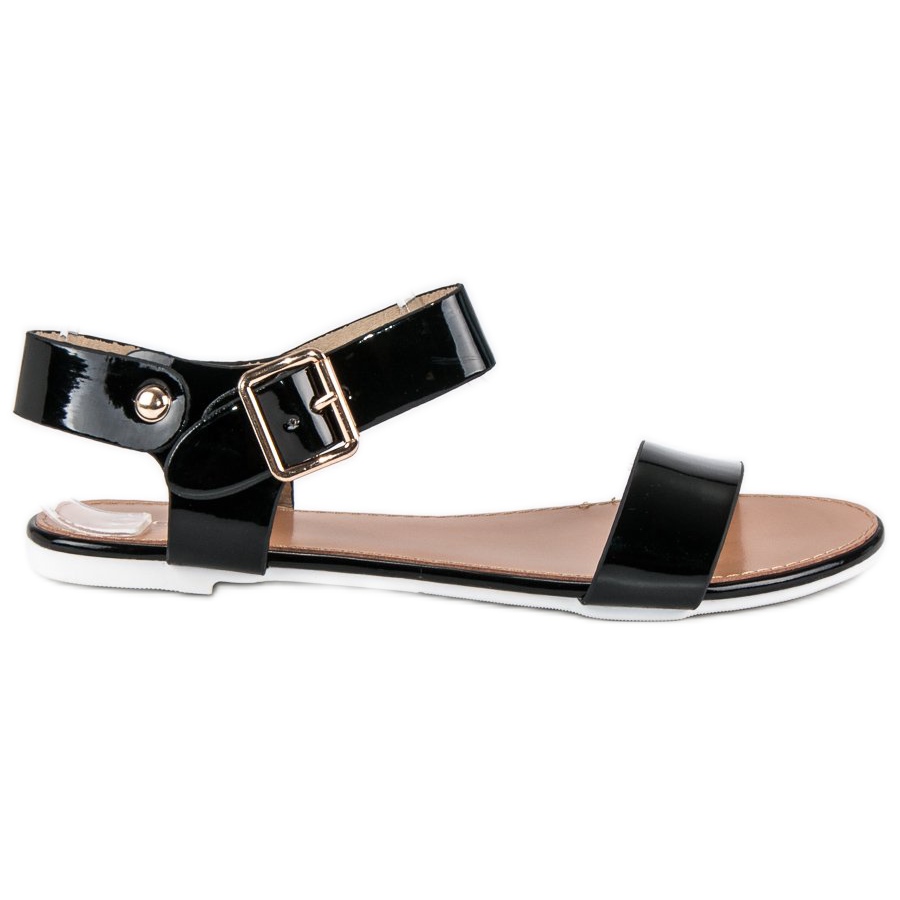 Ploché sandály Black Vices jsou perfektní volbou pro letní dny, kombinují eleganci a pohodlí. Tyto stylové boty vyrobené z lakované koženky perfektně padnou na každou nohu, takže vypadají mimořádně působivě. 1,0 cm plochý podpatek zajišťuje pohodlí při nošení po celý den, což z nich dělá perfektní volbu jak pro každodenní procházky, tak pro elegantnější příležitosti.