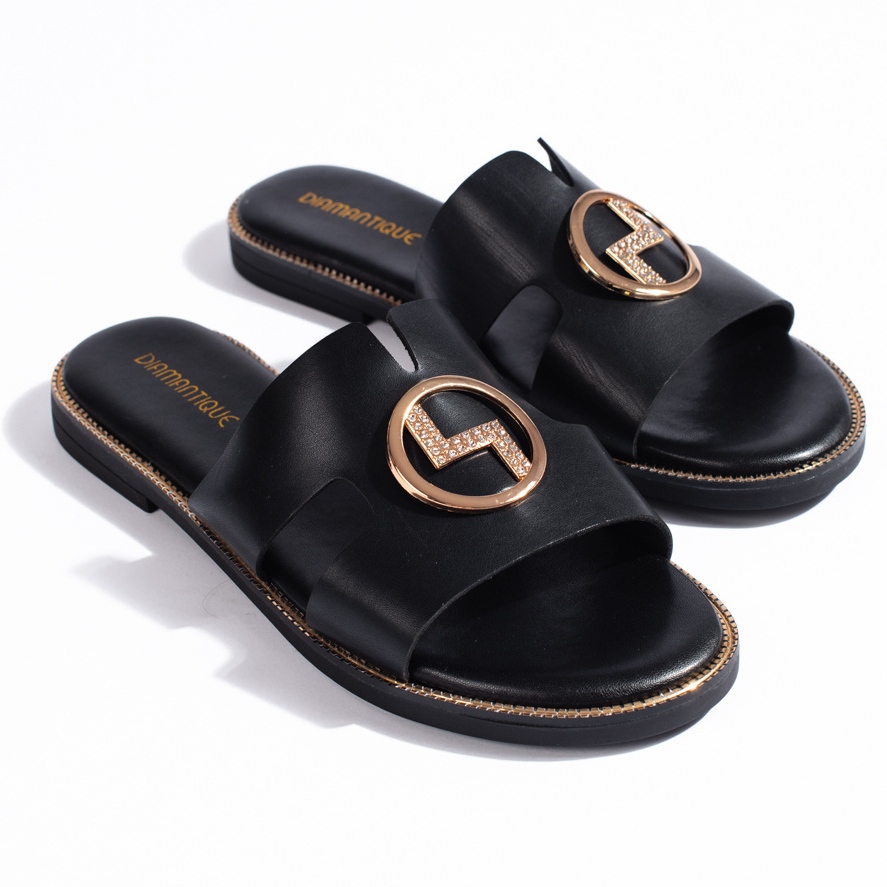 Inna marka Černé ploché žabky se zlatým zdobením černá