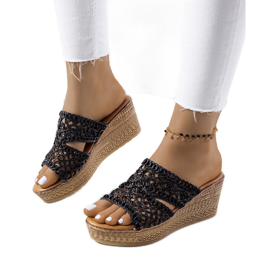 Černé mules na klínu Clara nesmí chybět ve vašem šatníku, který se jistě bude hodit k mnoha ležérním stylům. Bez ohledu na příležitost jsou tyto žabky perfektním doplňkem pro každodenní i elegantnější příležitosti. Objednejte si je ještě dnes a pociťte rozdíl!