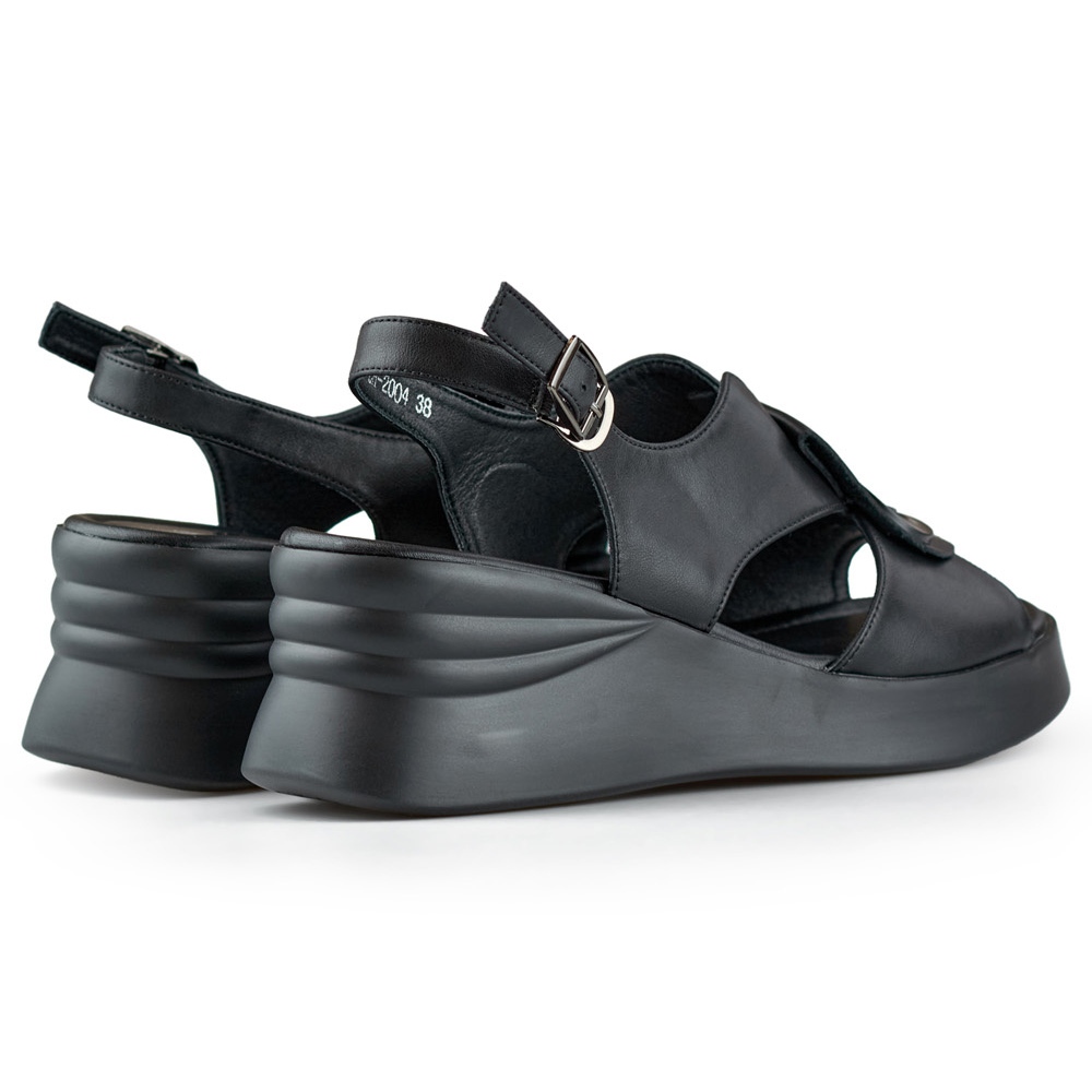 Tyto elegantní, černé ženské klínové sandály jsou perfektní volbou pro letní dny, které kombinují pohodlí a styl. Vyrobeno z nejvyšší kvalitní přírodní kůže, zajišťují pohodlí po celý den. Klasický střih s otevřeným prstem a jednoduchou, ale efektivní linií způsobuje, že se tyto sandály dokonale hodí do nejnovějších módních trendů.