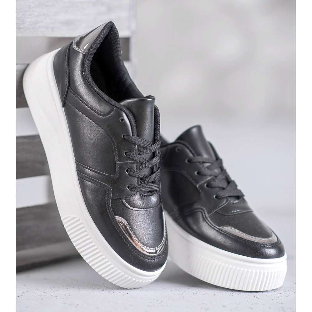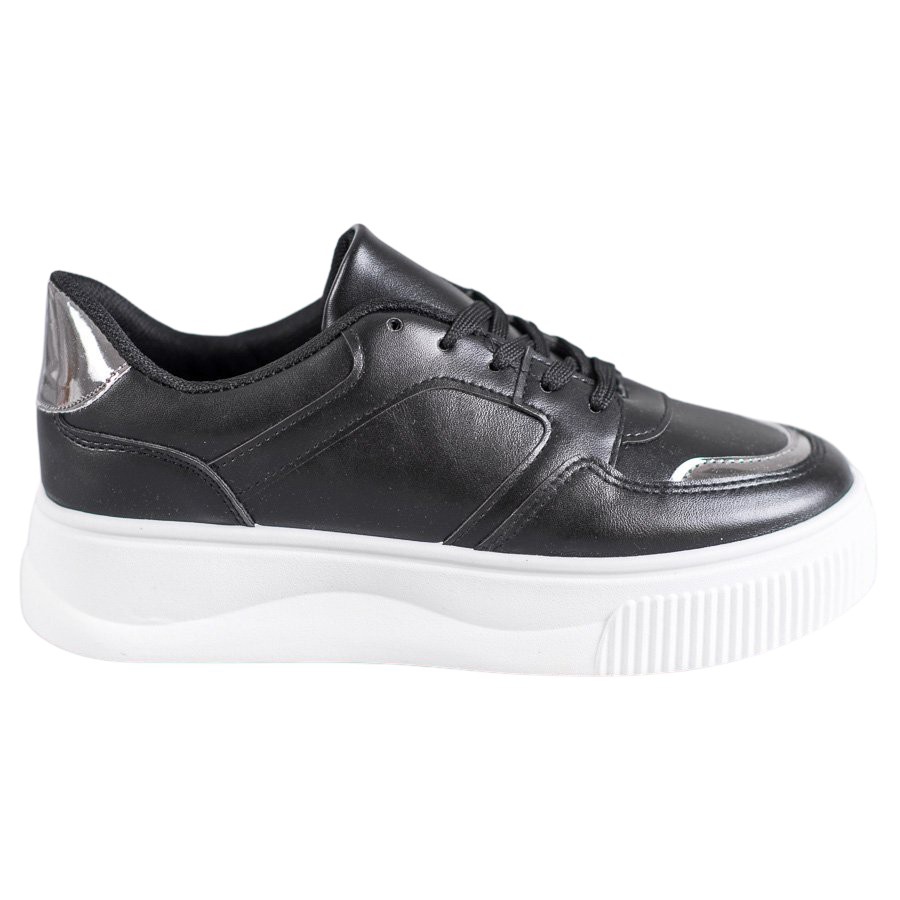Black SHELOVET creepers jsou perfektní volbou pro každou moderní ženu, která chce spojit styl s pohodlím. Tyto módní boty, ozvláštněné 4centimetrovou bílou platformou, dodají každému stylingu nejen výšku, ale i charakter. Ozdobné stříbrné vsadky přitahují pozornost a dodávají klasické černé jedinečný lesk.