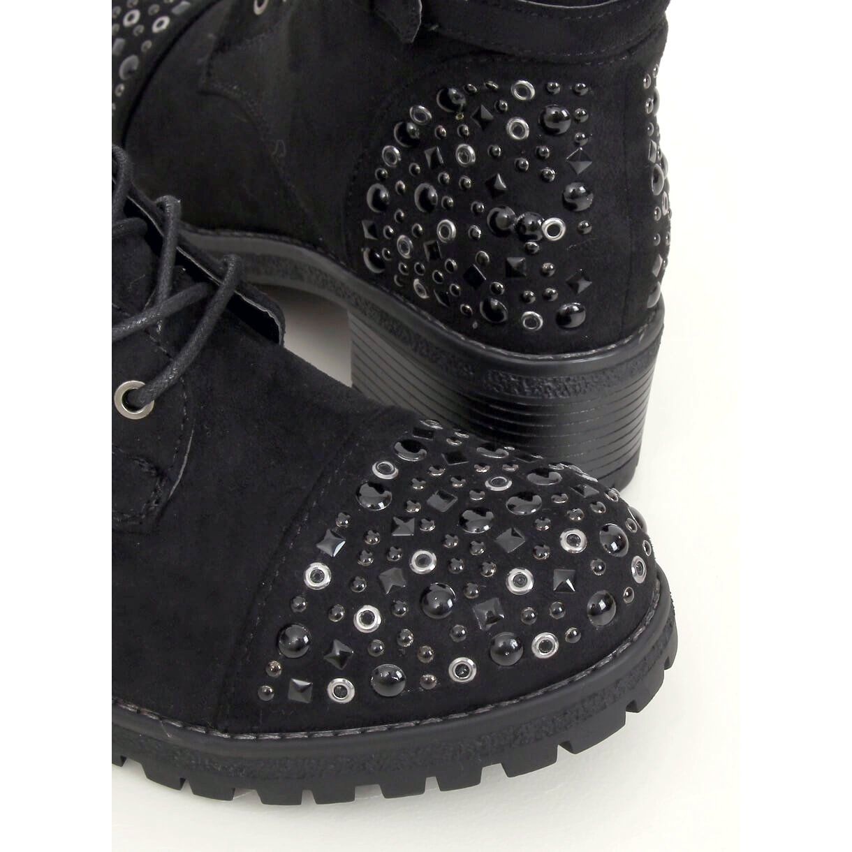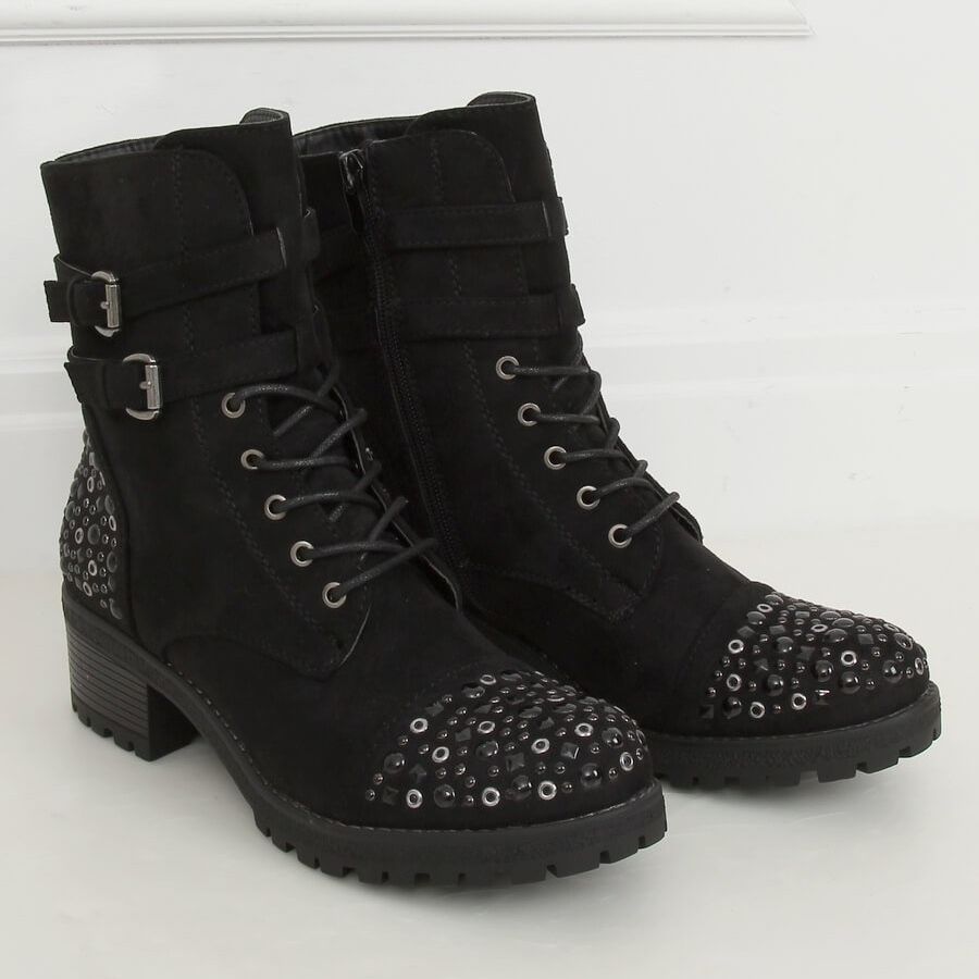 Představujeme černé pracovní boty č. 88063 Black - perfektní volba pro ženy, které chtějí spojit klasický styl s trochou rockového šílenství. Tyto šněrovací kotníkové boty s podrážkou a chráničem se vyznačují poutavým zdobením. Lesklé kameny a kamínky jim dodávají jedinečný charakter, díky nimž se každý majitel cítí jako skutečná hvězda.