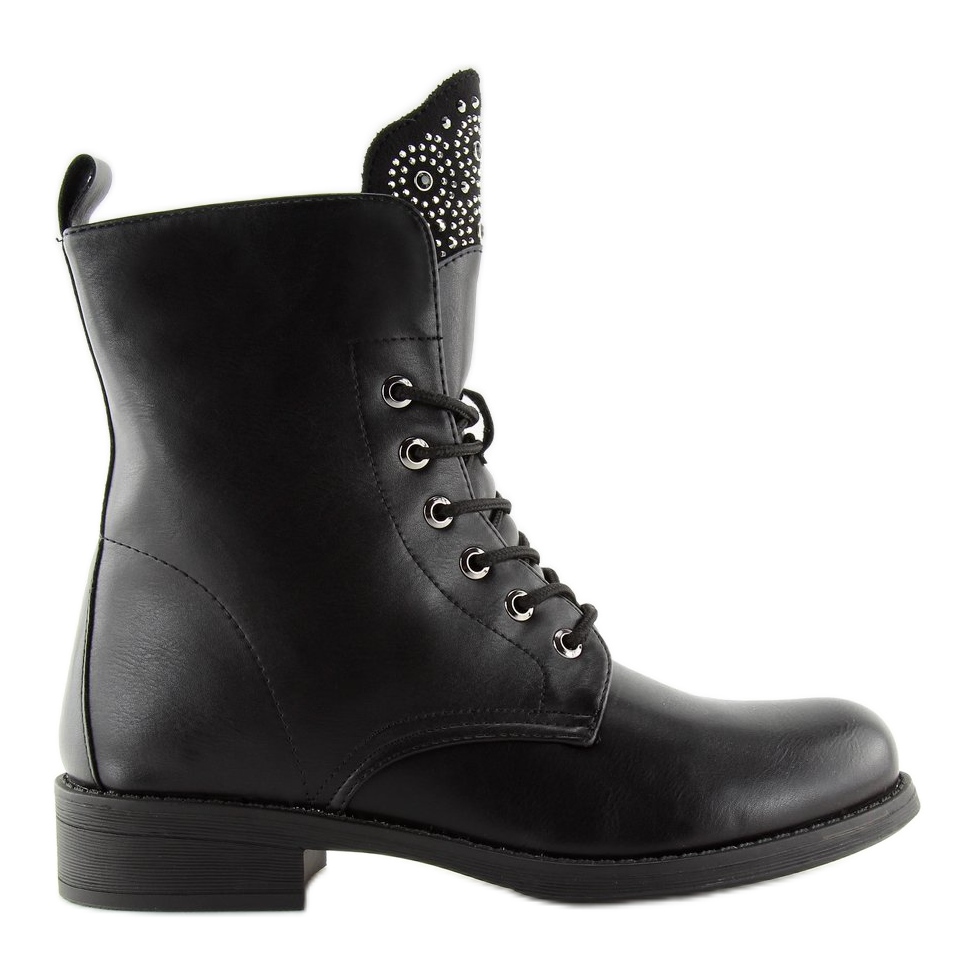 Kozačky se vyznačují lesklým jazykem, zdobeným drobnými kamínky, který jim dodává jedinečný lesk. Klasický design podtrhuje jednoduché šněrování, umožňující dokonalé přizpůsobení šířce chodidla. Vyrobeny z ekologické kůže, jsou nejen stylové, ale také šetrné k životnímu prostředí. Vnitřek lemovaný jemnou kožešinou zaručuje pohodlí při nošení a teplo v mrazivých dnech.