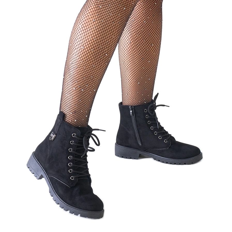 Inna marka Černé pracovní kotníkové boty z ekologického semiše na platformě Madana černá
