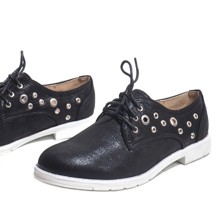 Černé prolamované boty s cvočky MB188-237 jsou ideální volbou pro ženy, které oceňují módní vzhled a pohodlí při nošení. Tyto elegantní boty se vyznačují šněrovacím zapínáním, které umožňuje snadné přizpůsobení noze a zajišťuje pohodlí při každodenním používání.