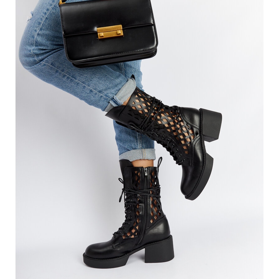 Podrobnosti: Černé prolamované kozačky na vysokém podpatku Visalia černá