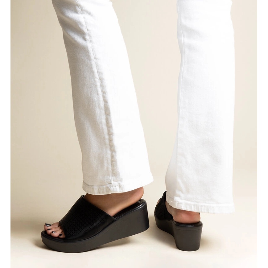 Podrobnosti: Černé prolamované pantofle na klínku z eko kůže Garvin černá