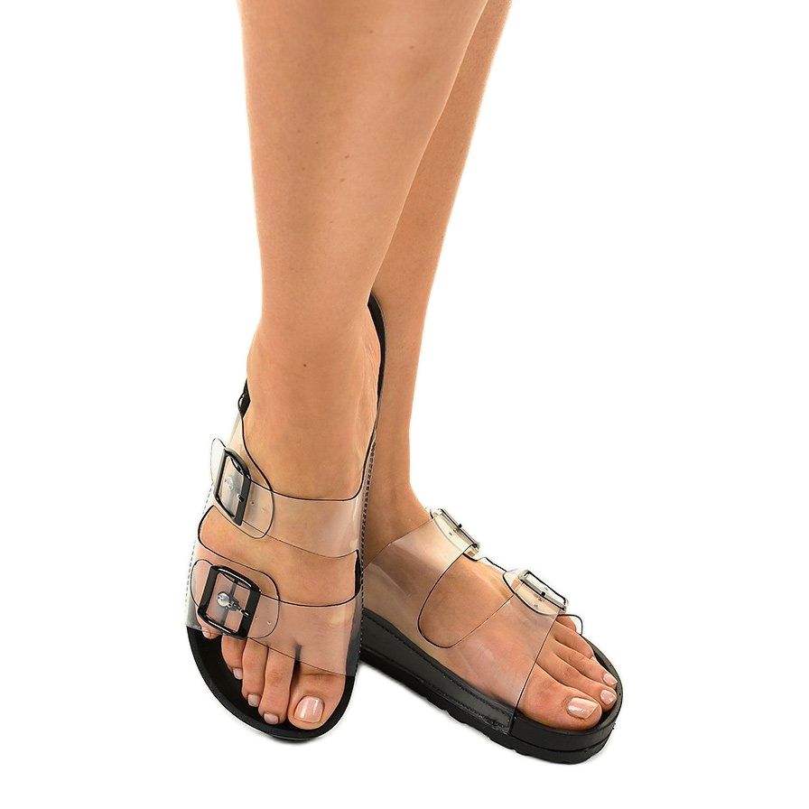 Inna marka Černé průhledné pantofle se sponou SE-9605 vícebarevný