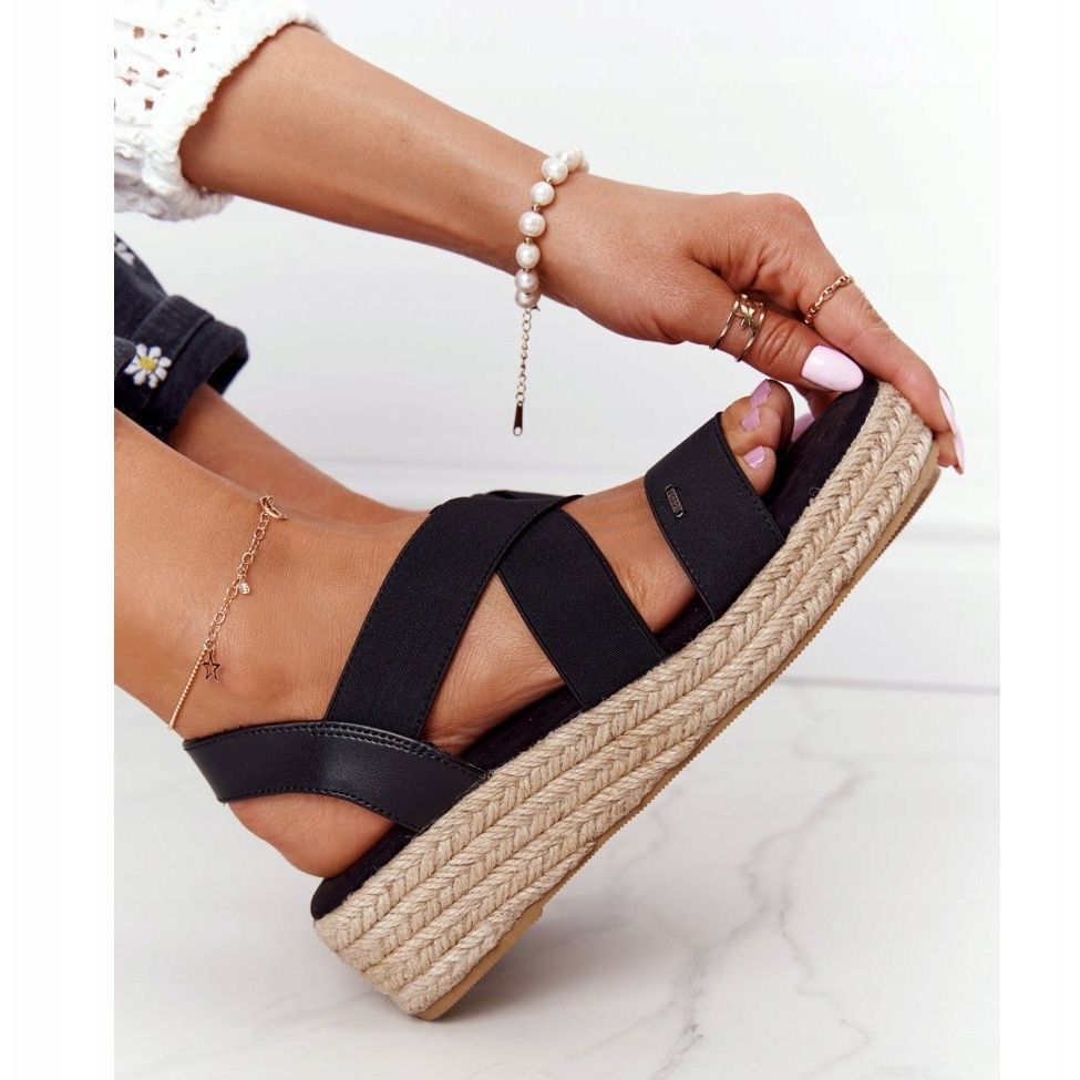 Big Star Černé sandály na klínku s manžetou Big Star HH274411 černá