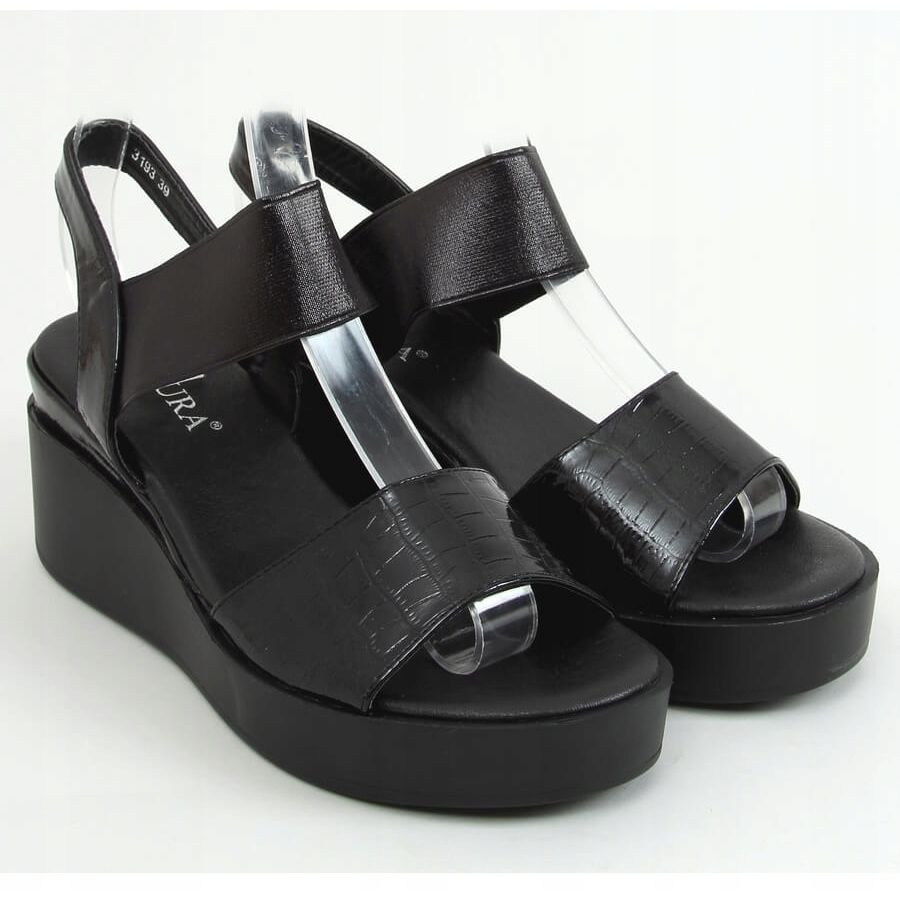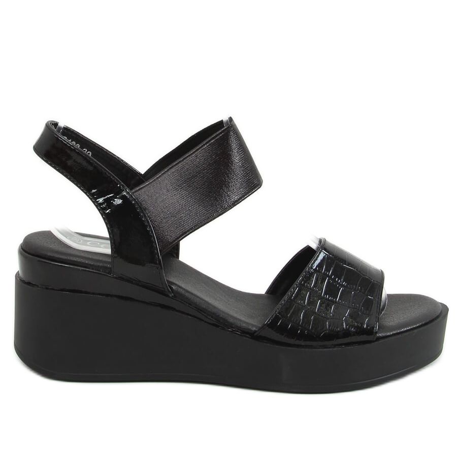 Inna marka Černé sandály na klínovém podpatku 3193 Black černá