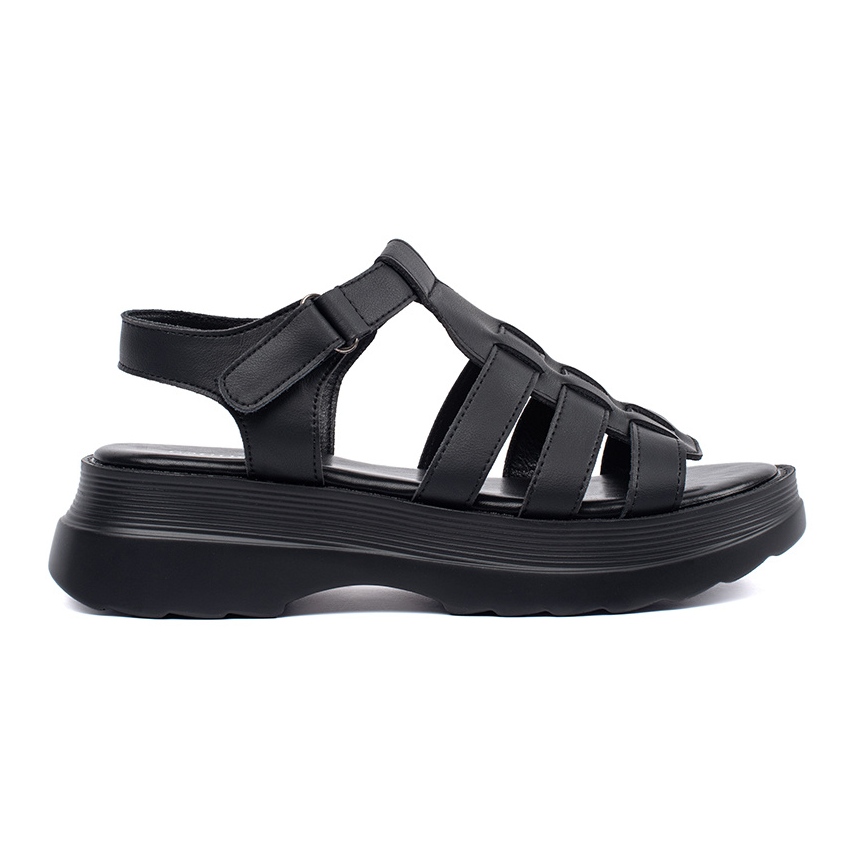 Upevněním suchého zipu je rychlé a snadné obuv a navíc vám umožňuje dokonale porovnat sandály do tvaru nohy. Klasická černá barva způsobuje, že tento model dokonale mísí s různými stylizacemi - od příležitostných po elegantnější.