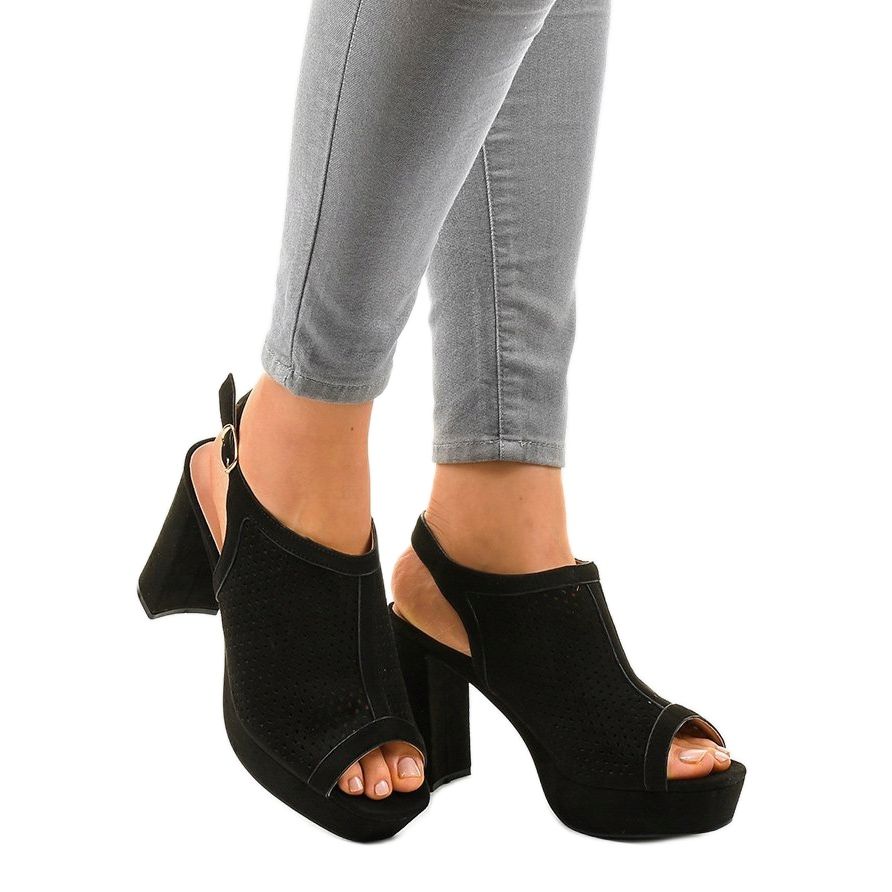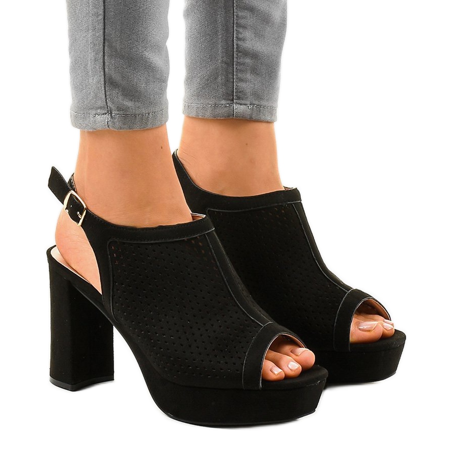 Inna marka Černé sandály na podpatku s otevřenou prací 9R82 černá