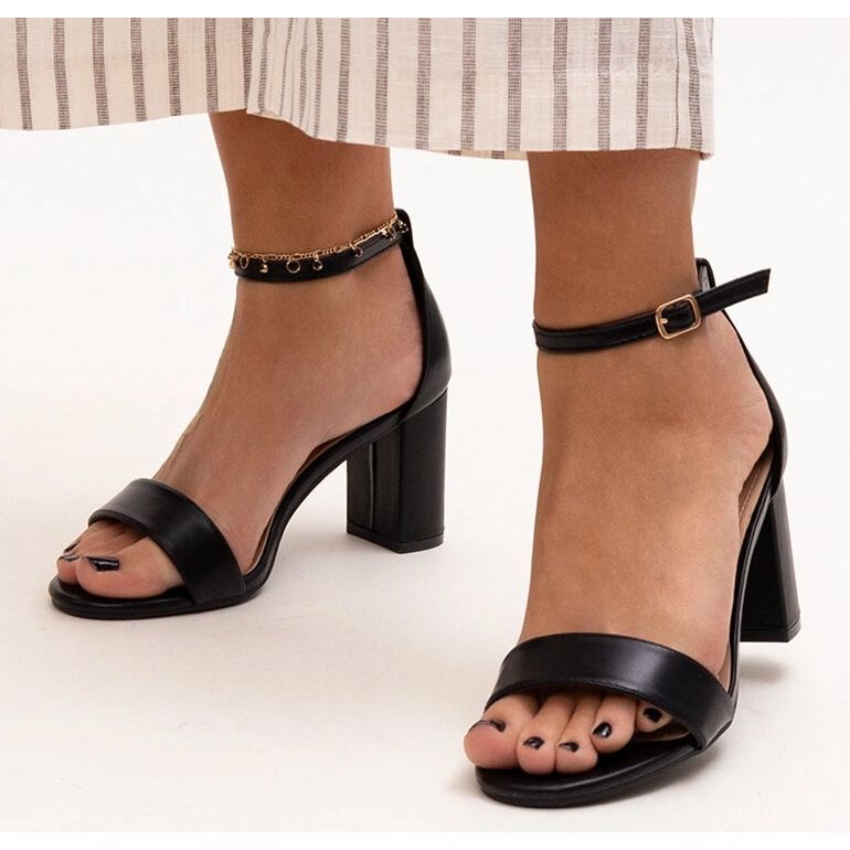 Černé sandály na příspěvku Atifa jsou vynikající volbou pro letní dny, které kombinují moderní design a bezkonkurenční pohodlí. Díky jejich otevřenému designu jsou tyto elegantní sandály ideální pro horké dny, což zajišťuje adekvátní ventilaci nohou. Vysoká pata 7,5 cm zaručuje stabilitu, což z nich činí ideální řešení i pro delší procházky.