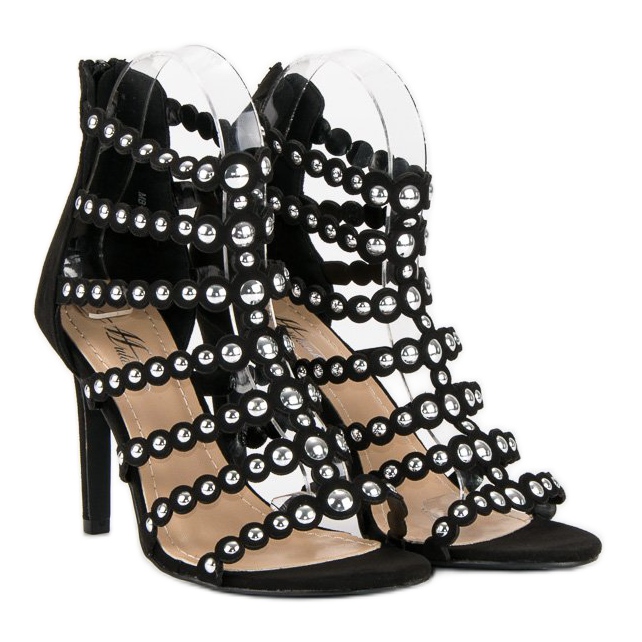 Černé sandály dokonale zdůrazní štíhlost nohou díky vysokému podpatku 10,5 cm, díky kterému bude každý styling noblesní. Další výhodou jsou kamínky, které botám dodávají charakter a lehkost. Sandály jsou vybaveny praktickým zipem, díky kterému se snadno nazouvají i vyzouvají.