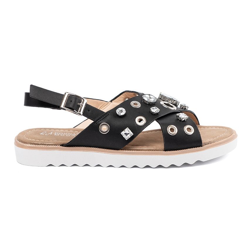 Objevte novou dimenzi pohodlí a stylu s černými sandály s dekorativními čepy Shelvt. Tyto jedinečné ženské sandály jsou pro léto skvělou volbou, ideální pro každodenní stylizace. Vyrobeny ze 100% napodobování pokožky s vysokou kvalitou, poskytují elegantní vzhled a umožňují pohodlí nosit.