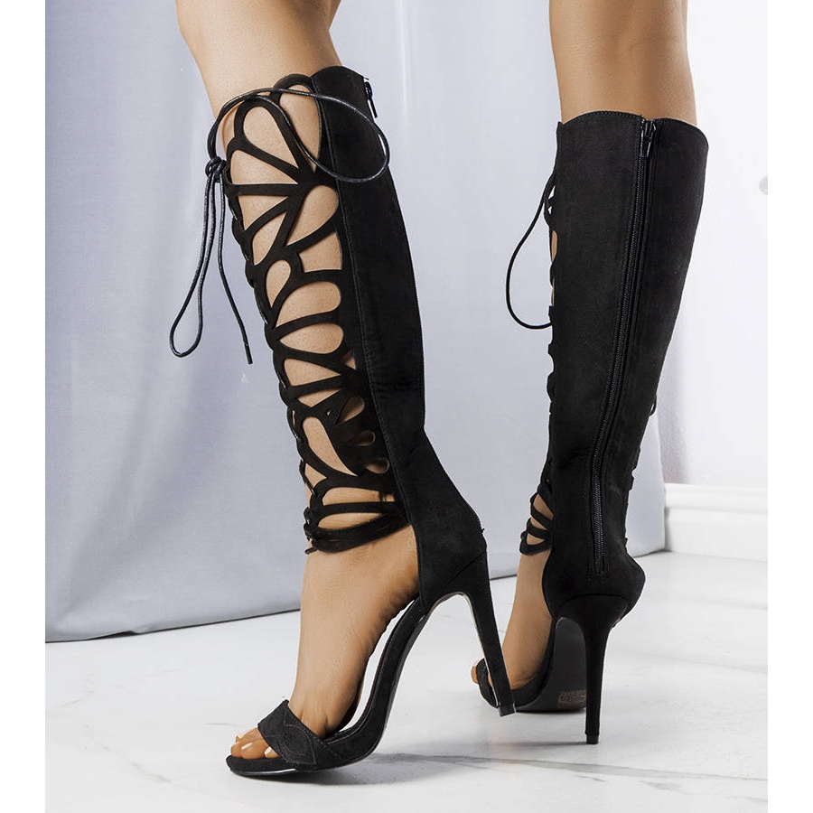 Sandály se zapínají vzadu na praktický zip a mají zavazování po celé délce, což umožňuje dokonalé přizpůsobení každé noze. Vysoké 11 cm vysoké podpatky zdůrazní postavu a dodají sebevědomí.
