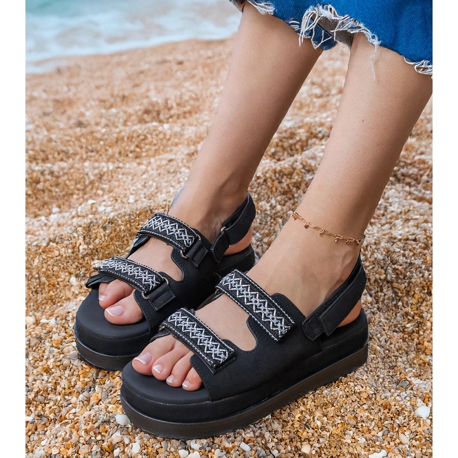 Černé sandály s vyšívanými pruhy na platformě černý