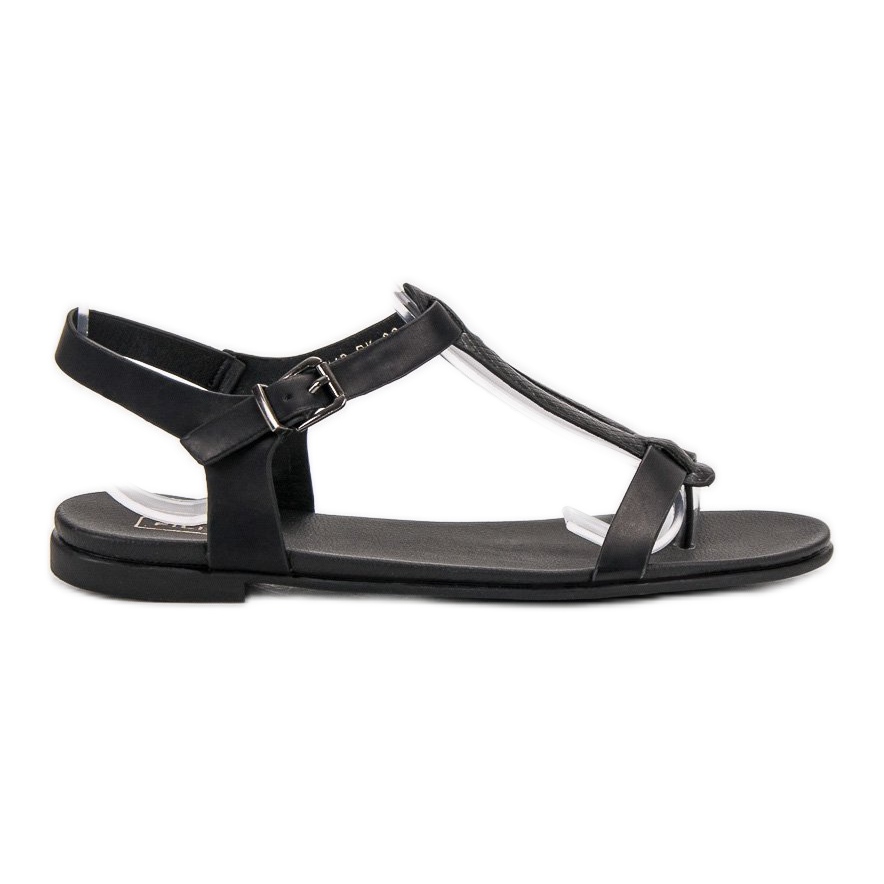 Černé žabky mají 1,5 cm plochý podpatek, který umožňuje pohodlné nošení po celý den. Zapínání na přezku zajišťuje, že obuv perfektně sedí na noze a eliminuje riziko posunu při chůzi. Díky otevřené patě a hladké podrážce jsou tyto sandály vzdušné a jako stvořené pro jarní a letní dny.