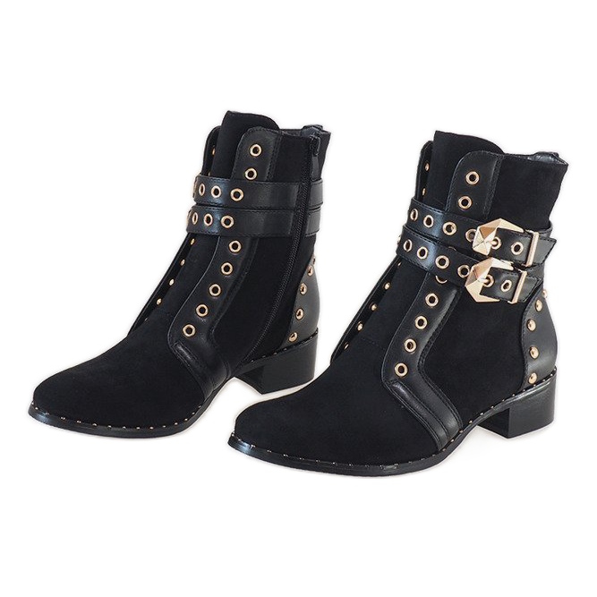 Boty 9243 jsou vybaveny atraktivní přezkou a zipem, díky kterému se snadno nazouvají i vyzouvají. Kulatá špička dodává jemnost a výška podpatku 4 cm a typ podpatku ve tvaru kvádru zajišťují stabilitu a pohodlí i při delším nošení.